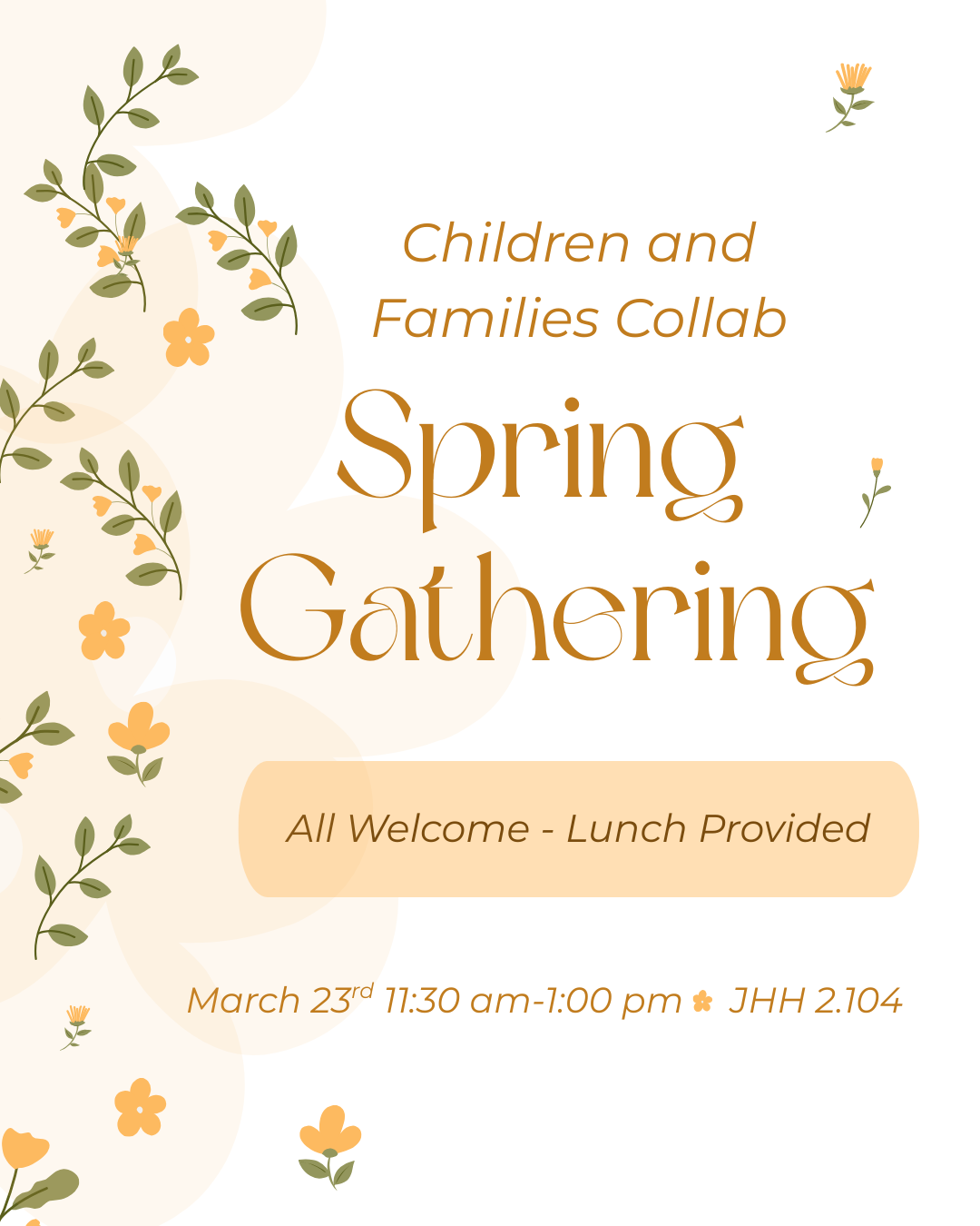 Hargis Hall 2.104 1823 Red River St, Austin, TXCome enjoy lunch and connect with the Children and Families Collab leads. This informal gathering is an opportunity to meet others interested in this work, share ideas, and help shape […]